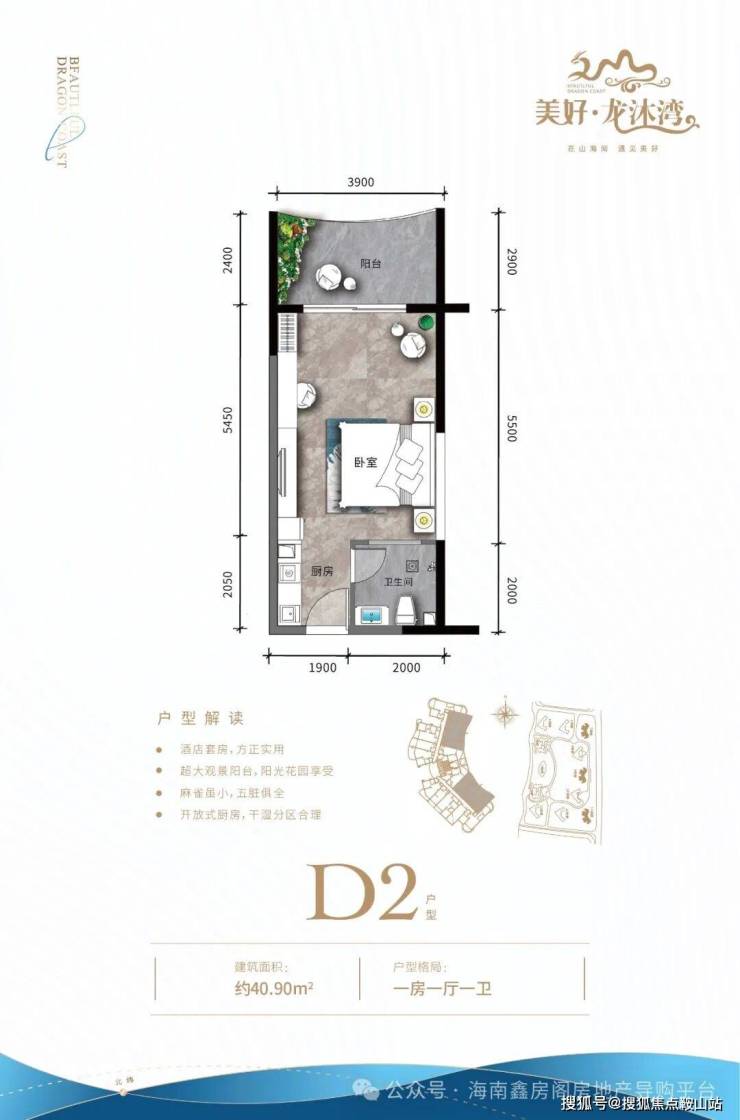 ① 开间户型独立明卫,各功能区域俱全,瞰景阳台,超大景观面宽