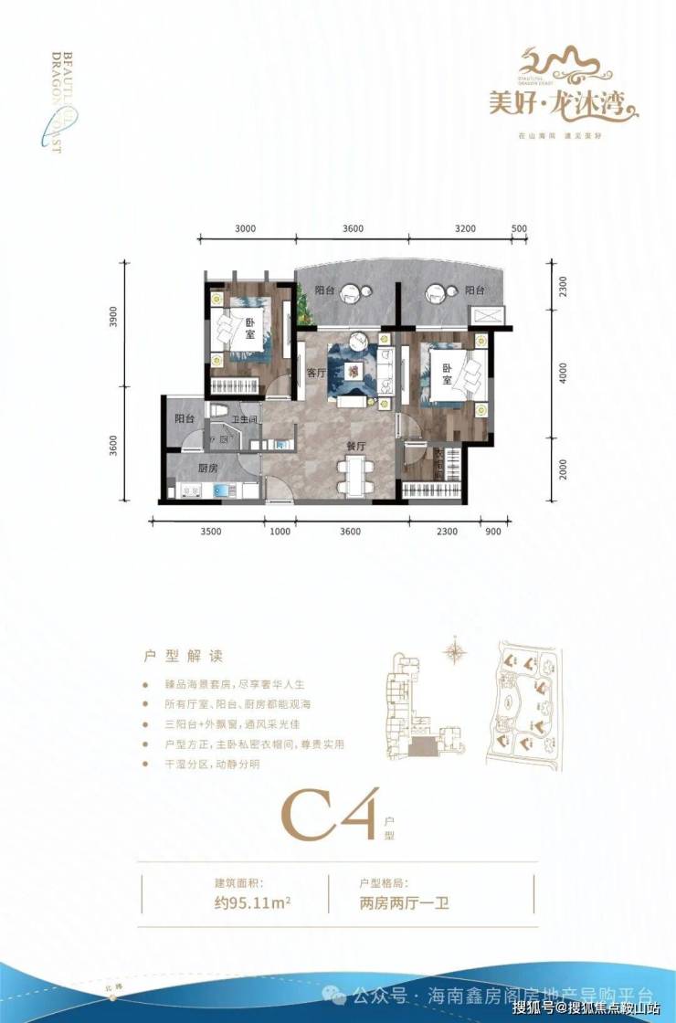 ④ 三房户型三面采光,空间方正合理,双独立明卫,270°环型瞰海阳台