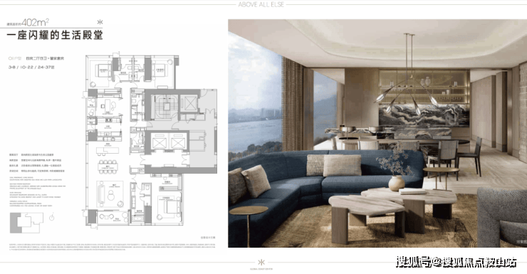 - 402m²(近似项目401/404m²户型):顶豪标杆,稀缺性突出