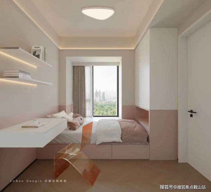 次卧以浅粉与米白营造甜美柔和氛围。
