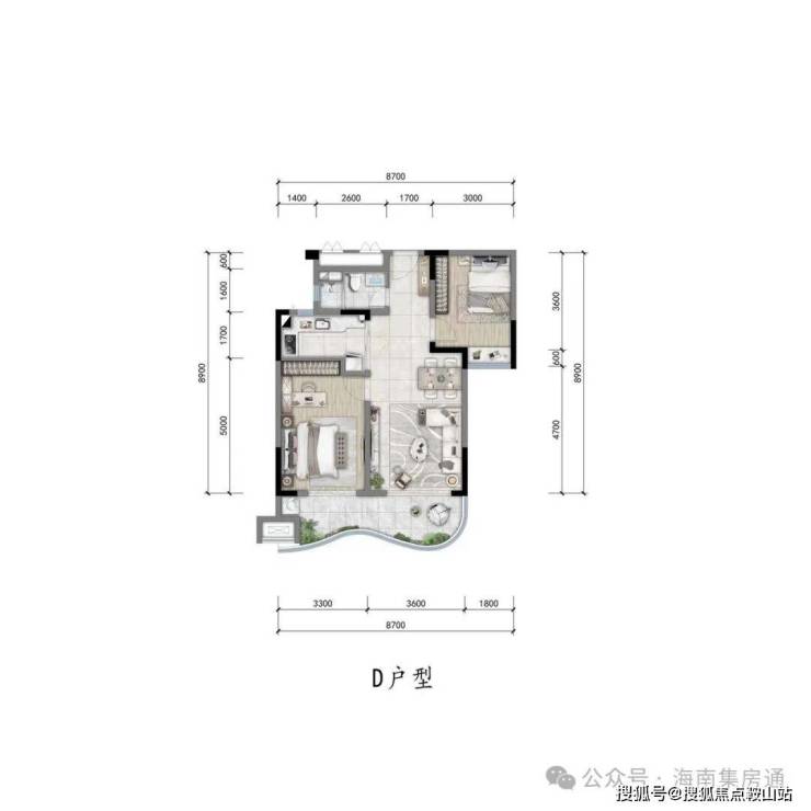 “D”户型图约85㎡两室两厅一卫