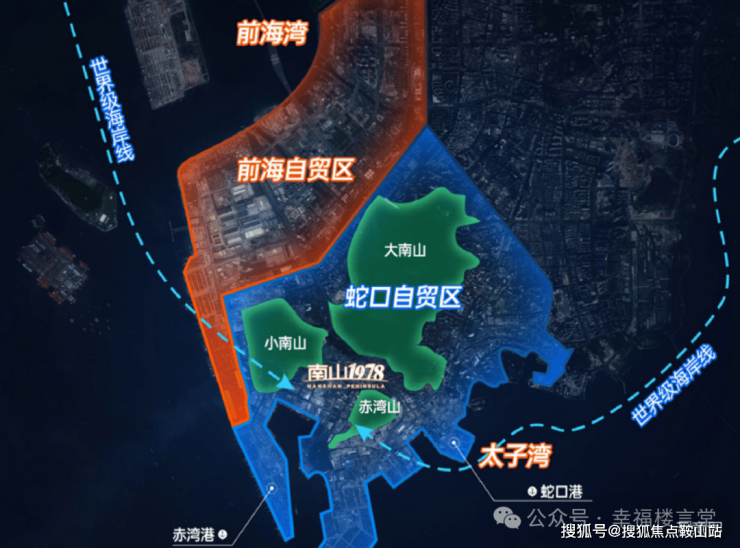 在大的蓝图下,中国南山以同步世界湾区的规划理念,打造“前港-中园-后城”的城市格局。并依托3山1海的资源禀赋优势,以“两环、三心、三轴、六大街区组团”的蓝图规划,打造屹立深圳湾区的世界半岛生活。