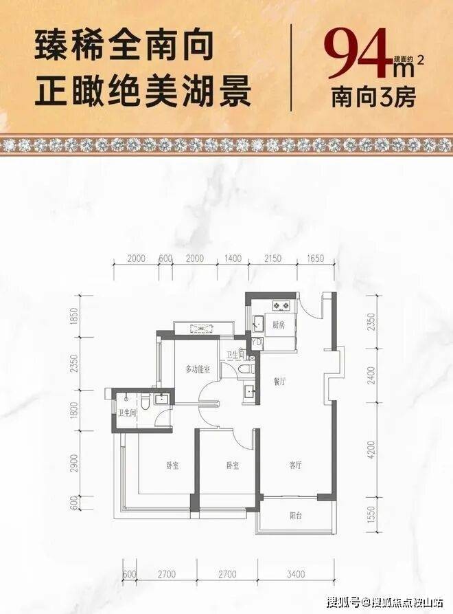 约94㎡经典3房,南向高性价