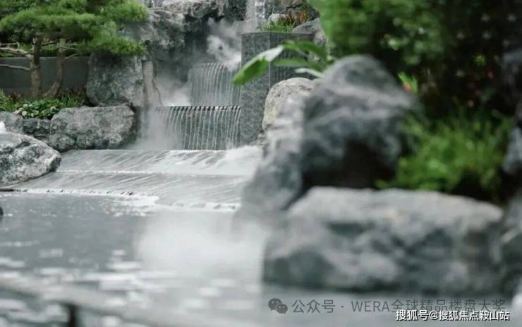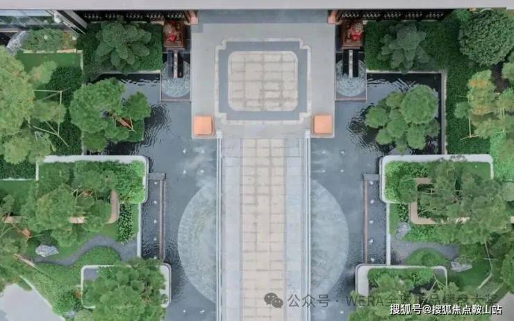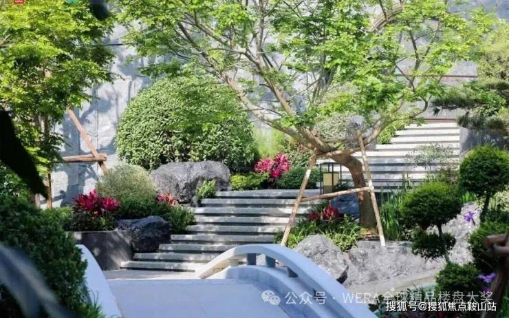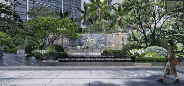 整个花园复合多样,高低起伏,若隐若现,创造出中式通透而又不看透的园林空间;绿茵草坪上一片梦幻的紫花风铃木,开花时铺满枝桠,唯美震撼,仿若花海。无风雨连廊连接各栋架空层,精致的景观会客廊架结合涌泉水景,以及品质化外摆,打造功能自由的核心林间无界会客厅。