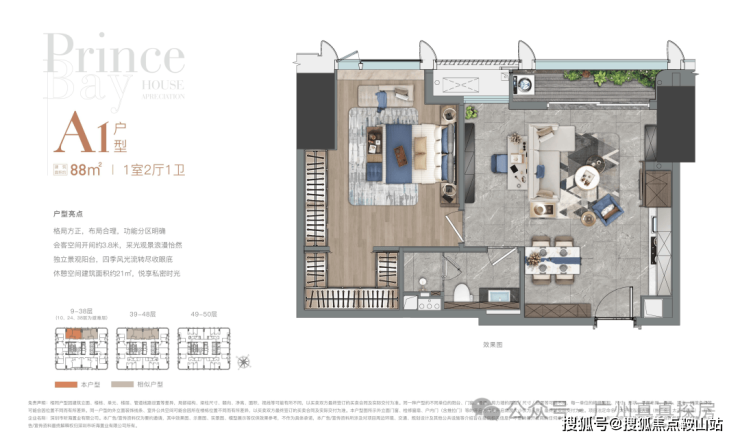 公寓层数:9-50层(1-8层为商业)