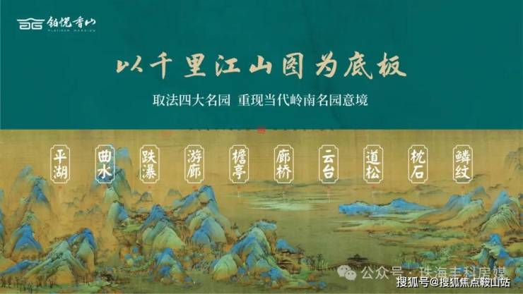 园林设计以《千里江山图》为灵感蓝本,巧妙融合岭南四大名园精髓,复刻佛山梁园"半边亭"。通过"漫卷云章"、"金水澜庭"、"琉璃水院"三进式景观轴线,呈现移步换景的东方美学。
