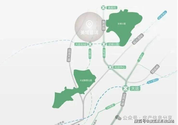 交通配套:美域蓝湾交通网络完善,形成多层次、高效的出行体系。距离地铁16号线龙城公园站约1.3公里(步行15分钟),2站可达大运枢纽站,可换乘3号线、14号线及深大城际(设计时速160km/h,2026年开通)。