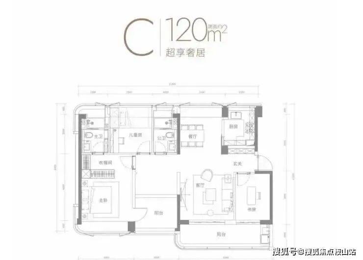 约120㎡户型,玄关处多一间房,跟客厅共享6.2米阔景阳台。这个空间可以做成书房或者娱乐室,工作休闲都有一处安静的空间。还能跟客厅打通,还形成一个开间6.2米的超大横厅。主卧套房尺度达到约3.4米*4.6米,带步入式衣帽间和独立卫生间。