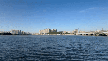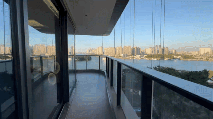 楼市君所在285平这个弧形转角阳台,把江景视野尽可能的放大。
