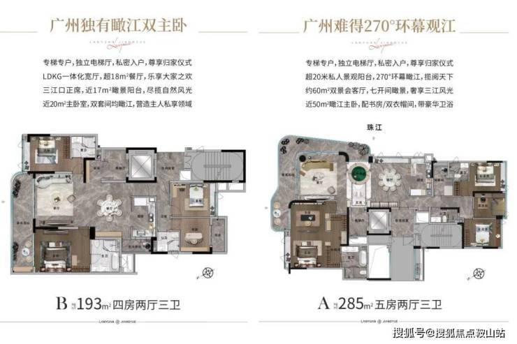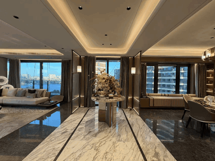 项目共规划68套大平层,主要户型为193平方米和285平方米,每户均享有270度江景视野。