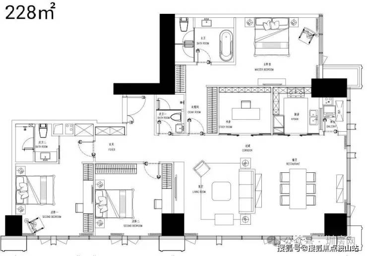户型面积:68-228㎡,涵盖2至4房