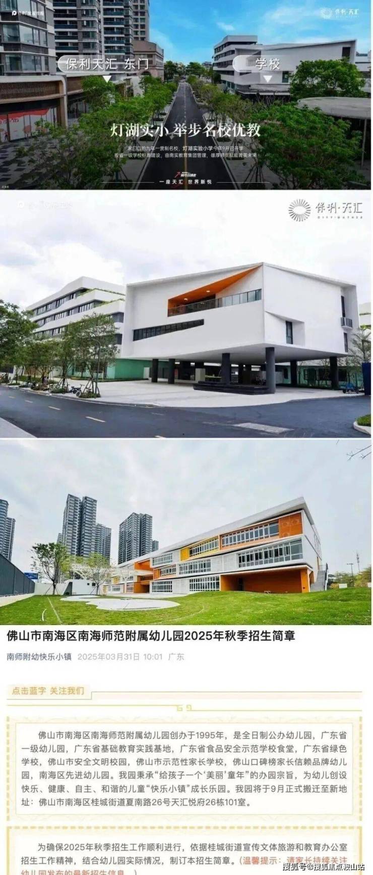 ①配建校资:联合南实教育集团打造省一级24班灯湖实验小学,目前已经正式开学;配建一所18班制幼儿园,省一级南海师范附属幼儿园,目前招生简章信息已公布。