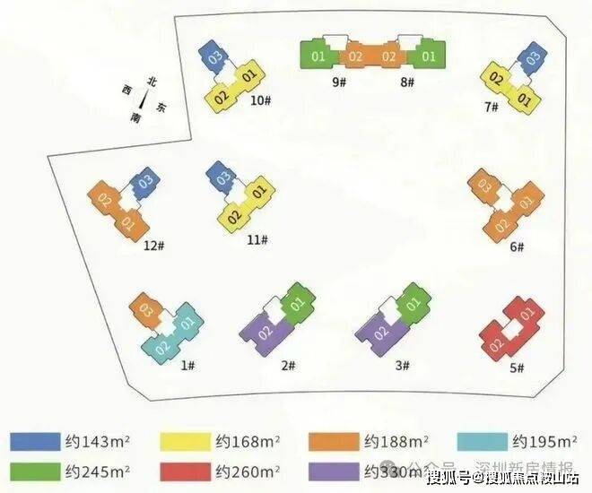 规划总户数约616户,首推1栋3-5-6-7单元,220套,约143-168-188-245-260-330㎡四房和顶楼约488平㎡户型。