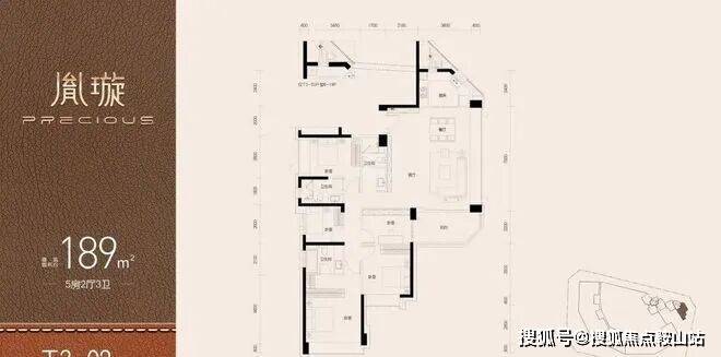宝安中心【鸿荣源胤璇】住宅产品T3栋楼王单位,还有几套189平5房3卫东南朝向的户型。
