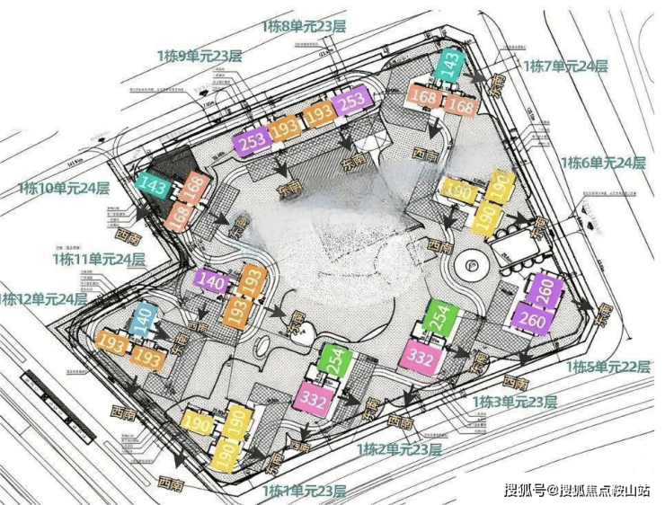 社区采用点式错位布局,实现户户朝南且视野互不干扰。住宅包含2梯2户板楼与3梯3户塔楼,层高22-24层。