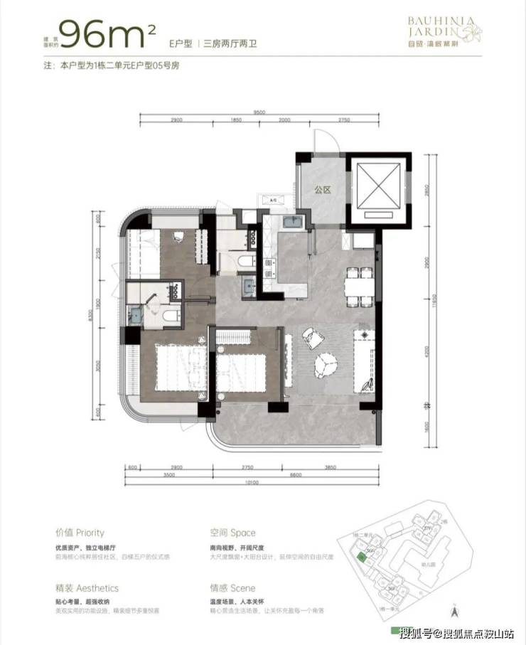 97平三房两卫949--1053万,单价9.8--10.9万;