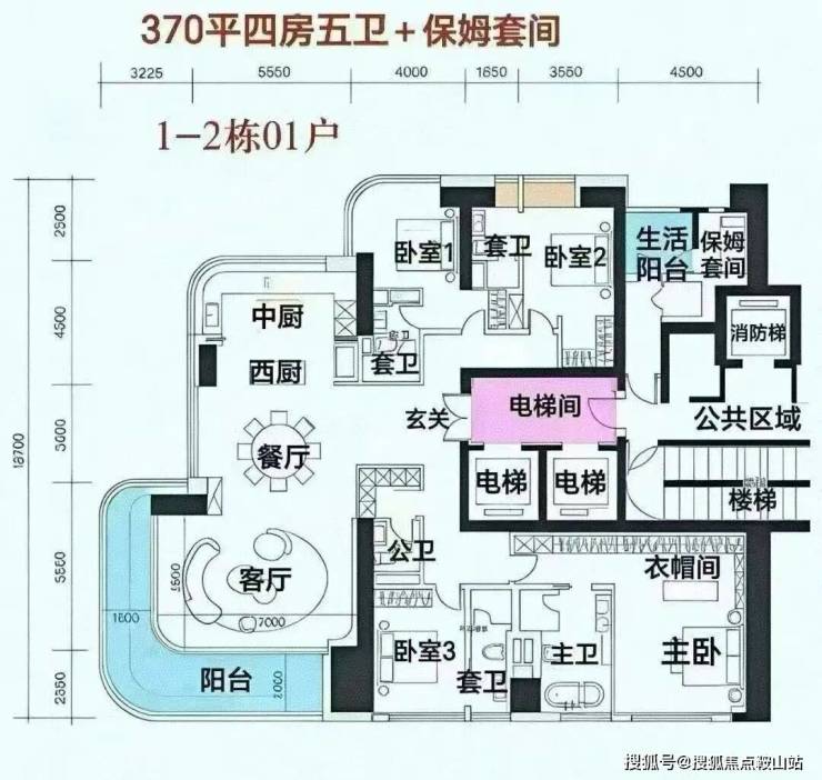 改善户型:370㎡四房五卫+家政套间