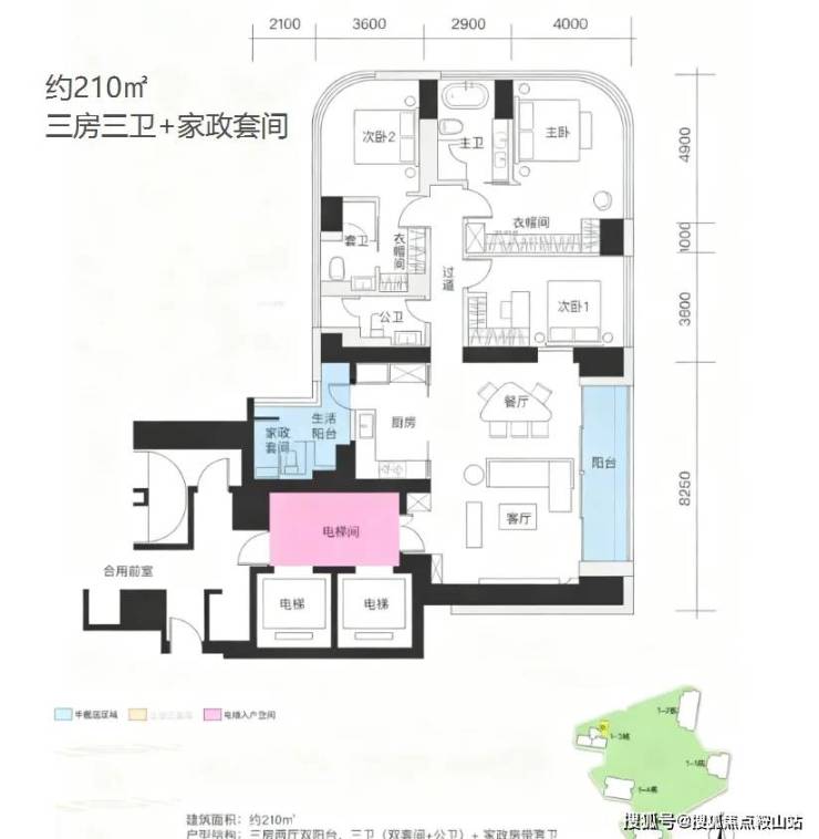 一层三户,舒适户型:约210㎡精致空间,设计精巧,满足高端改善需求。