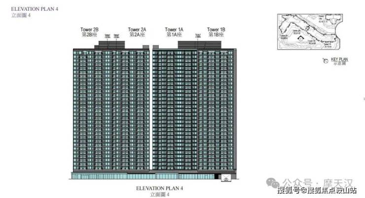 项目由2幢36层的高座物业及1幢8层低座住宅大楼组成,总建筑高度约111.53米(该地段分区计划大纲限制高度主水平基准上110米)。