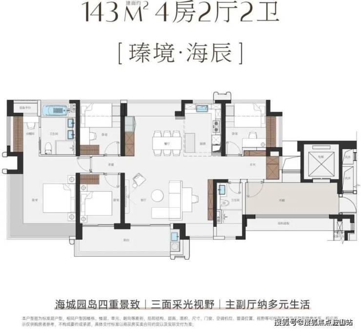 户型方面,主推建面115㎡-143㎡四房,户型使用率超100%,最大可达108%,最高赠送面积近44㎡。