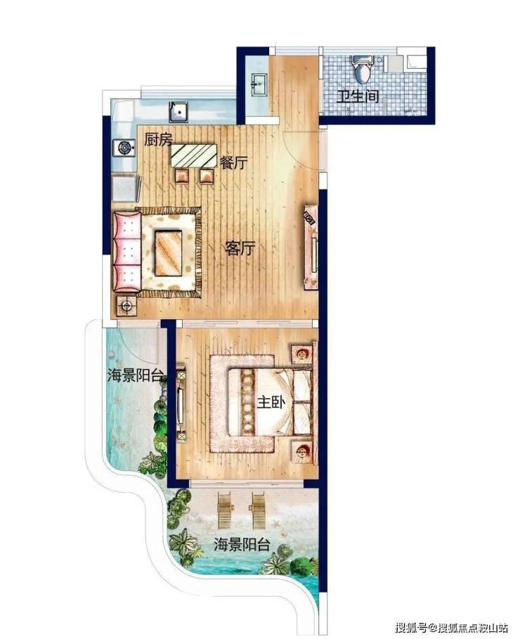 【A1户型】52㎡ 单间含开放式亲海露台,户型方正,舒适与实用率皆得,放大度假体验。