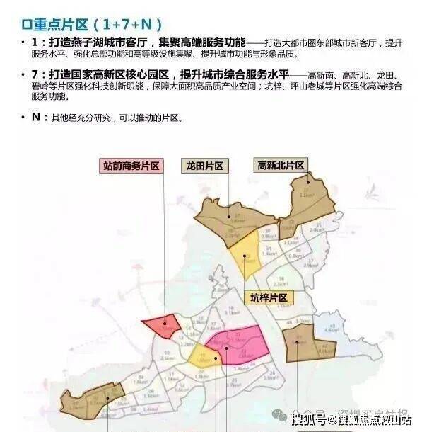 规划还提出建设宜居宜业的高品质中心城区,重点推进燕子湖、坪山老城、碧岭、高新南、高新北等重点片区城市更新和土地整备项目实施,加快形成“1+7+N”格局体系。