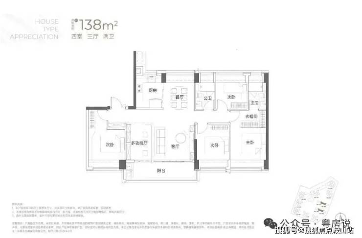 138㎡的4房2厅2卫:竖厅南北通透格局,专梯入户,客厅6.1米开间,LDKB一体化,全屋飘窗,4个卧室分别做到了3.9米/3.25米/2.9米/2.8米的宽度,主卧加1个次卧270°全景飘窗,客厅出6.1米长的大阳台,U型厨房,得房率约95-97%(包含赠送),阳台主朝西南向。138平米户型分布在3栋1单元、3栋2单元、4栋1单元、4栋2单,4个单元纯大户型。