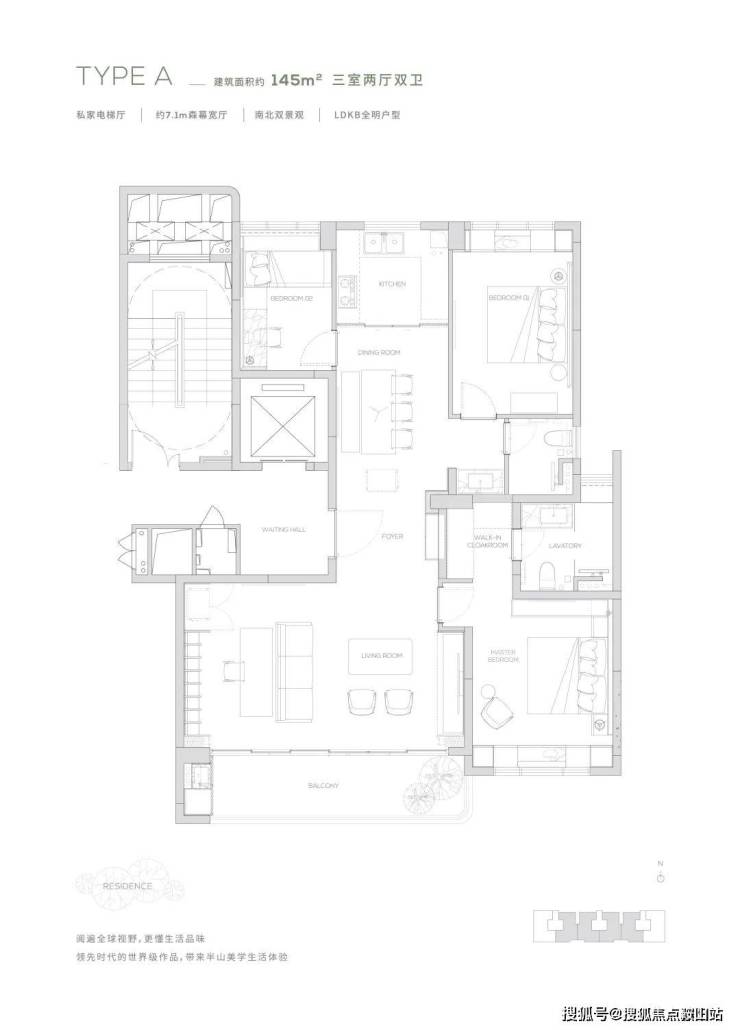 约37万㎡全龄社区,产品涵盖145-315㎡三至五房,专梯专户,享有私家电梯厅,出入更具私密性