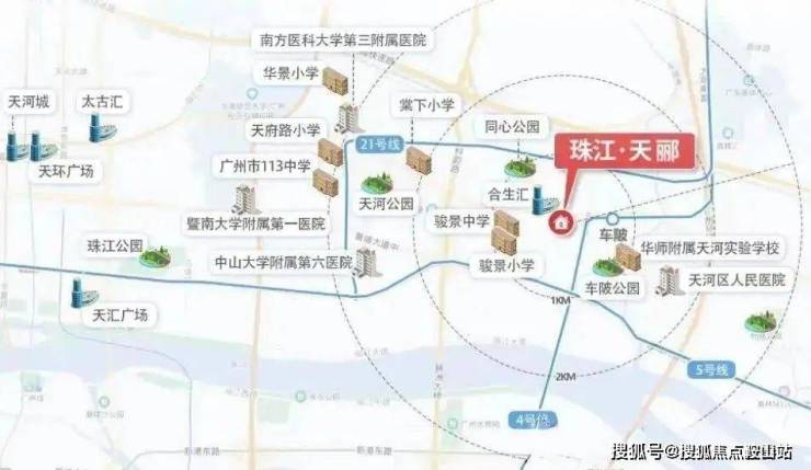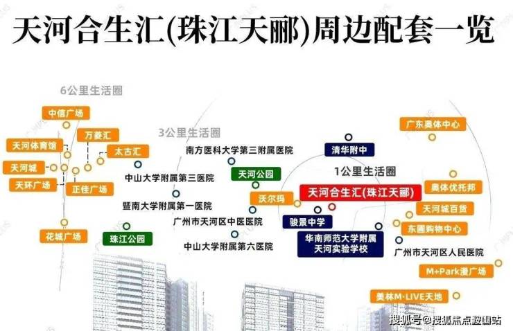 生活配套;商业上,一公里范围就有卜峰莲花、沃尔玛等大型商超,附近还有棠下大排档美食街,逛街购物、吃喝玩乐很方便。值得一提的是,珠江天郦西侧有在建的大型商业综合体合生汇广场,属于高端城市综合体,有40万㎡的体量,汇聚了五星级酒店、高端会所、大型商业购物中心,未来这个“超级综合体”建成后,能级或比天环广场、万菱汇还要高,珠江天郦的业主不仅下了楼就能逛街,还能通过商场串联地铁、写字楼等业态。