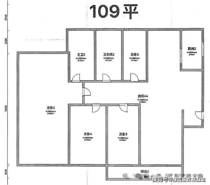 西边地块有2栋100米高的住宅楼,东边有1栋100米和1栋136米的楼,都是2梯5户设计,总层高27-28-39。