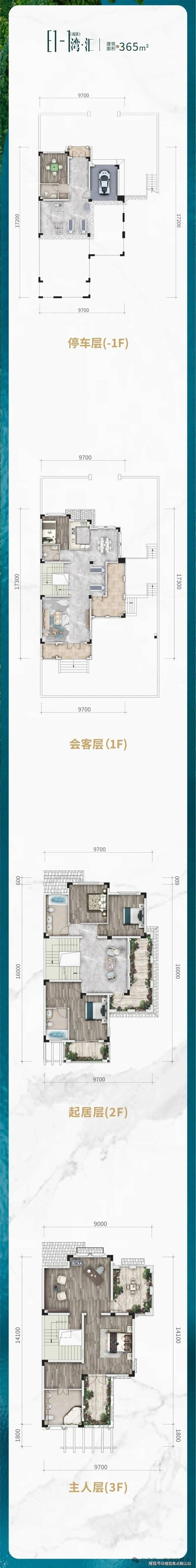 别墅户型:251-365㎡联排/双拼(415-560㎡独栋别墅)