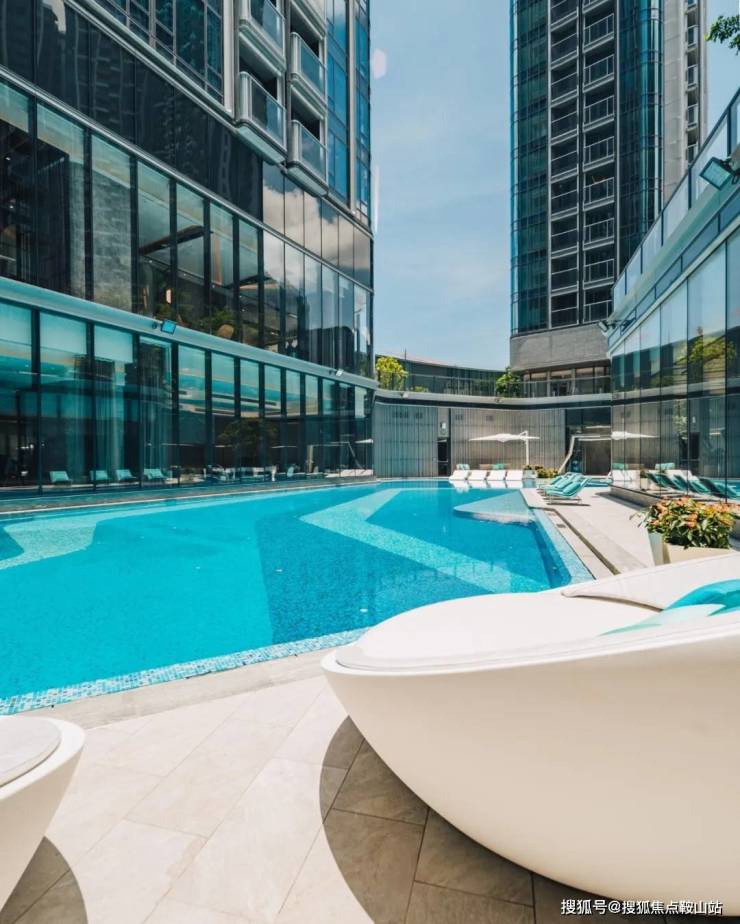 位于地库一层中庭的40米长室外泳池,图案与整体设计相呼应,四周设有多项亲水设施,以及色彩缤纷的植物,犹如城市中的神秘绿洲,为住户带来多重感官享受。业主可以在这里或畅泳碧波、或挥洒汗水、或良朋欢聚、或静享舒坦;或动,或静,写意随心。