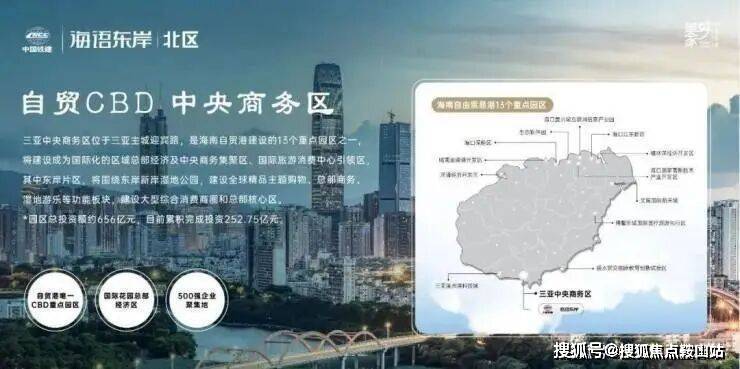 2024,海南自贸港封关运作攻坚之年,正式进入自贸封关倒计时。三亚中央商务区是海南自贸港13个重点园区中唯一以“商务区”命名的园区,其中东岸单元作为三亚CBD先行启动区。中国铁建·海语东岸(北区)雄踞于此,坐享时代发展红利。✅ 海语东岸售楼处专线:400-832-8772