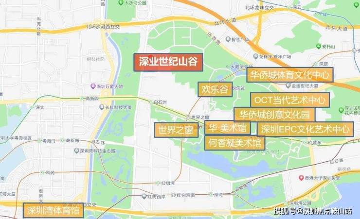 近享世界之窗、欢乐谷、锦绣中华民俗村3大国家级景区,而且南山5大美术馆中有3个位于周边:何香凝美术馆、华·美术馆、OCT当代艺术中心,平均每个月都有4-5场艺术展,与华侨城创意文化园、深圳epc艺术文化中心构成5大人文配套。