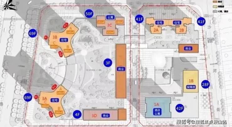 总栋数:8栋(一期:1A栋42层酒店+公寓、1B栋28层保障房,2栋1/2单元41层回迁住宅;二期:3A/3B栋67层住宅;3C栋50层公寓、3D栋4层公寓)。