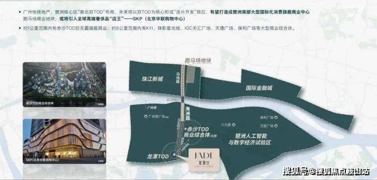 ①“珠金琶”黄金三角 广州CBD集群高地市中心“珠江新城+金融城+琶洲”构筑城市级CBD黄金三角,未来片区经济实力有望跃级提升。②“中国算谷”琶洲 世界一流数智示范区琶洲CBD,作为人工智能与数字经济试验区、广东省经济开发区,未来将打造万亿级产业集群。③“数智”龙头企业集聚 营收超4000亿琶洲进驻企业达3.4万家,涵盖腾讯、阿里巴巴、唯品会等数智领军企业,未来就业将达80万人。④ 三大世界级商圈环伺 约15min内举步即享珠金琶三大世界级商圈依靠一江两岸融合发展,有望打造成全国位居前列的世界级-超级商圈。⑤ 双TOD旗舰商业加持 繁华触手可及广州地铁地产琶洲核心区“南北双TOD”布局,未来有望打造成琶洲南部国际化旗舰商业中心。⑥ 海珠国家湿地 万亩绿意值此一域全国唯一超大城市中轴线上的国家级湿地公园,被誉为“广州绿肺”,距离项目仅约300米。⑦ 地铁11+18号线双轨交汇枢纽(1站琶洲-2站珠江新城-3站金融城)