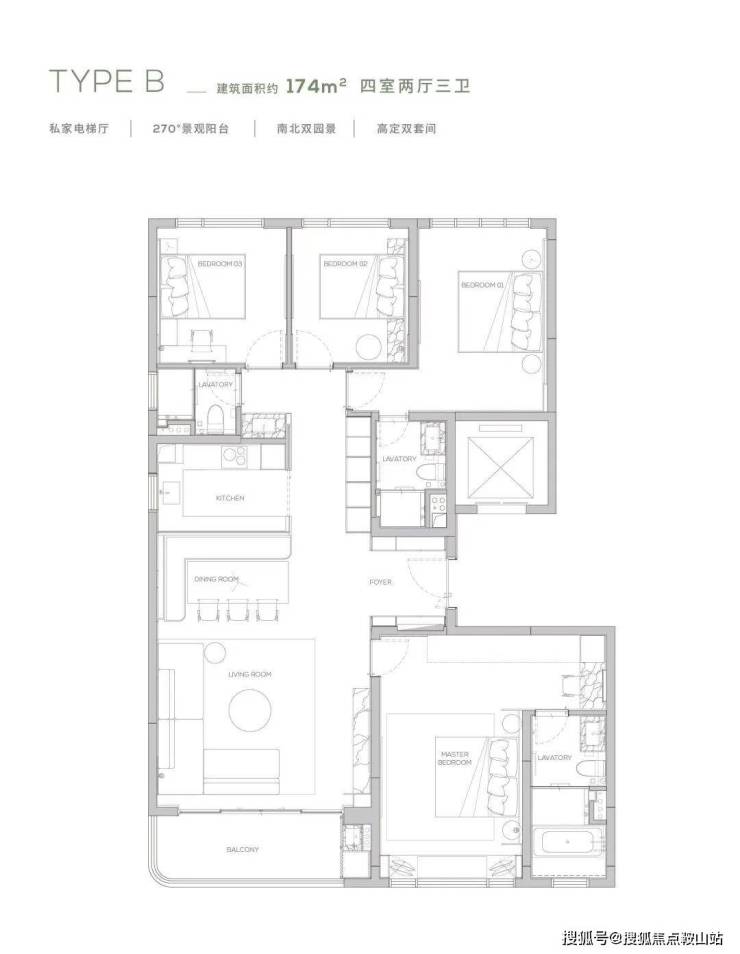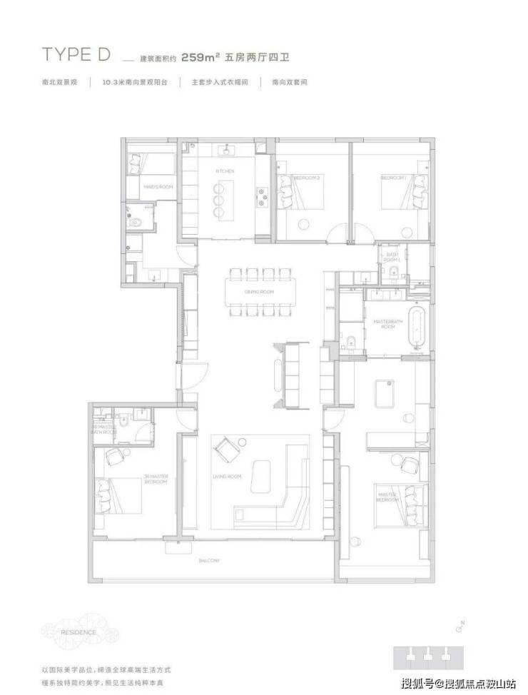 在售户型:145㎡三居、174㎡四居、190m²五居和260及320m²五居