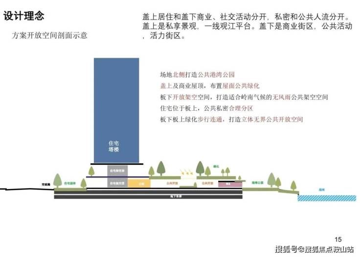 通过盖板设计造就的盖上私密园林、盖下滨江商业带,叠加270°环幕滨江会所和公共港湾公园,真的很city了。