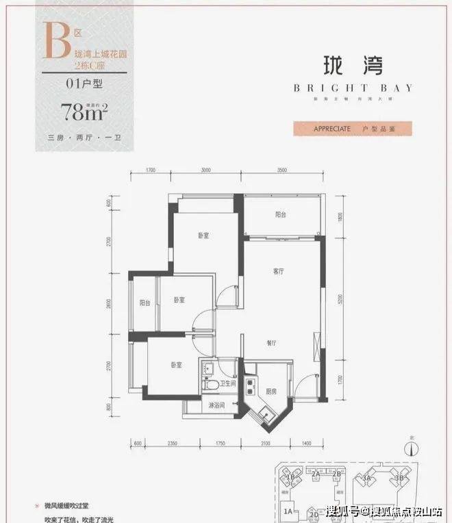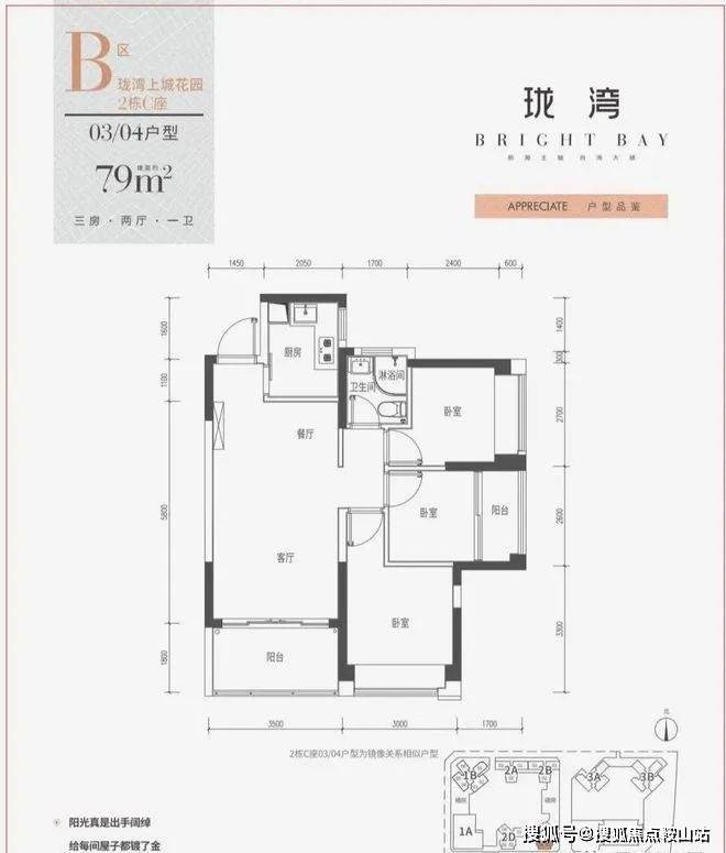 1、户型:建筑面积约78-79㎡极致三房两厅一卫,稀缺高性价比三房