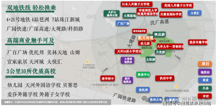 天外智谷分为两个校区,越秀观樾配建24班小学;缦云广州配建的九年制学校(18班小学+27班中学),今年9月份开学。