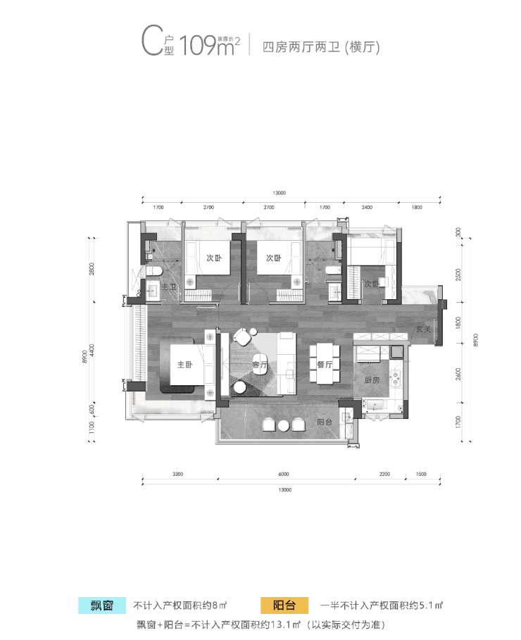【产品面积】108㎡/109㎡/138㎡