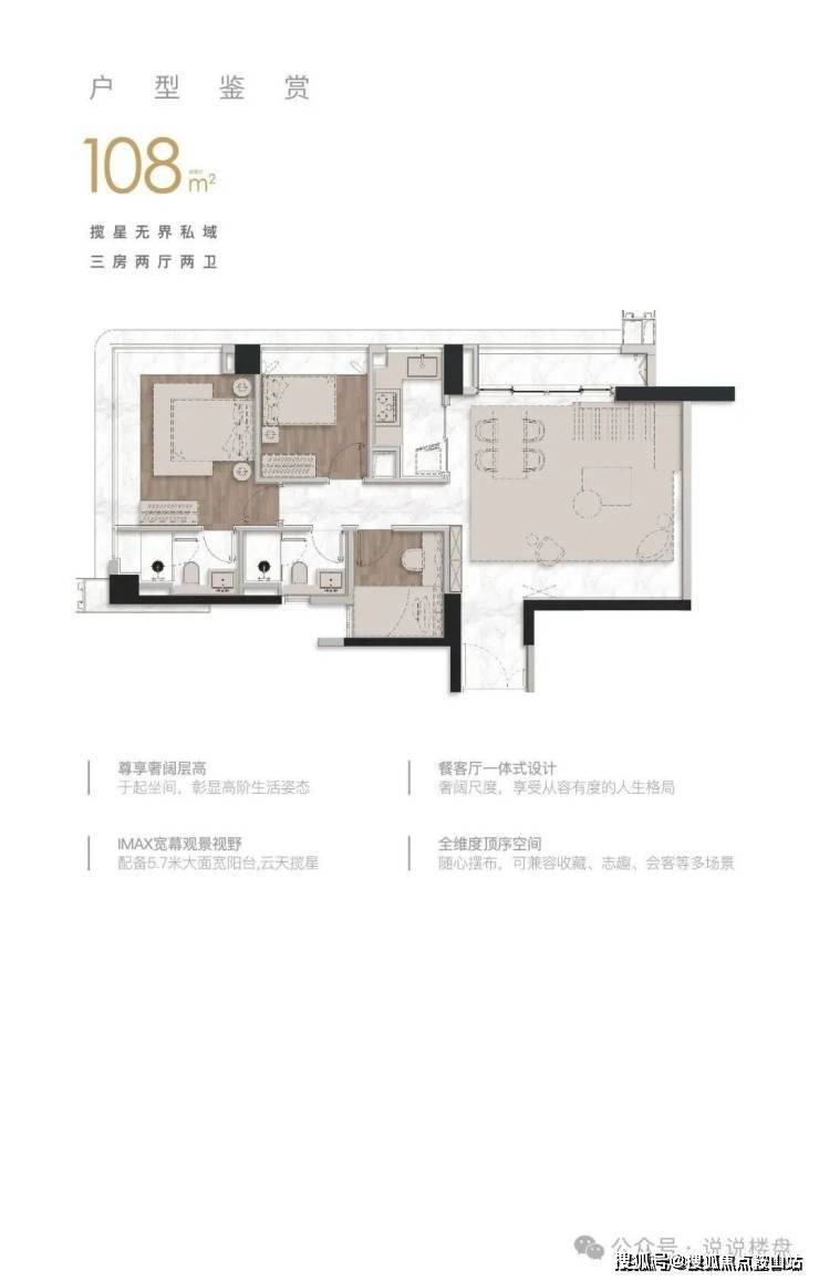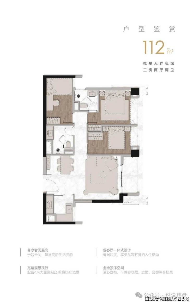 在A1【揽星】中两大匠心产品尤为引人注目。其中建面约108-112㎡的【星宸】环幕奢装平层,凭借双景观主卧+LDK一体化+全明烹调空间+宽幕观景视野,成为二人世界与三口之家的理想之选,轻松满足现代家庭对品质生活的追求,更是轻松入席白云新城CBD塔尖的理想恒产。