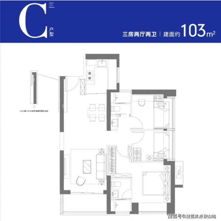 建面约103-129㎡的住宅产品,澜汇云庭户型图如下: