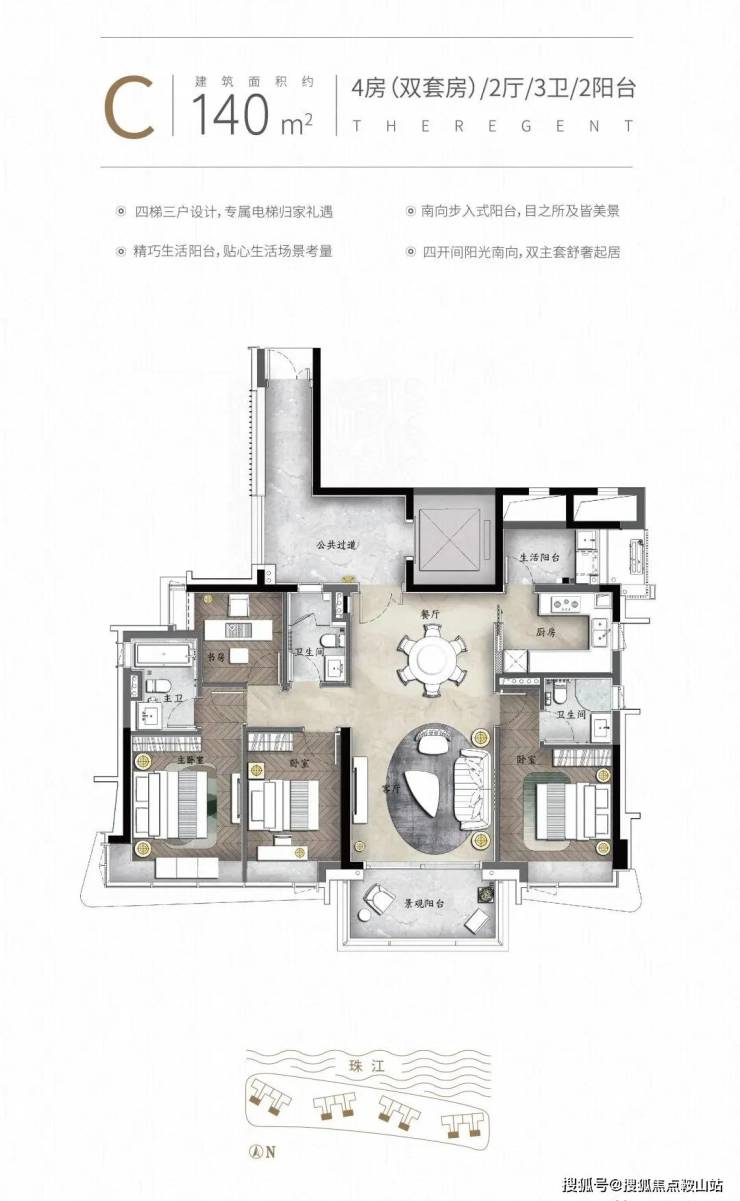 产品方面:全新二期『天启』组团面积约140-270㎡环幕临江大平层,永恒江景第一排,眺望小蛮腰,享500米宽阔无遮挡江景视野,并邀请三大全球知名顶尖设计大师倾力打造,12大国际品牌交标配置,专梯专户四房双套房设计,世界灵感前沿作品礼献广州!