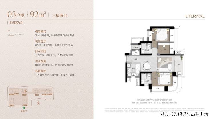 新规优势:通过设备平台、飘窗等赠送面积,得房率突破传统