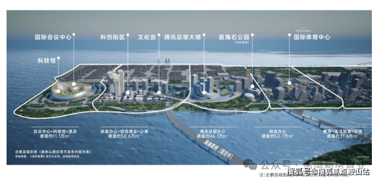 一座没有围墙的科技岛,企鹅岛园区规划办公区、生活配套、学校、会议中心等设施,连通地铁15号线(规划中)地下隧道等立体路网,串联起前海、宝安和南山中心等高科技企业云集区域。