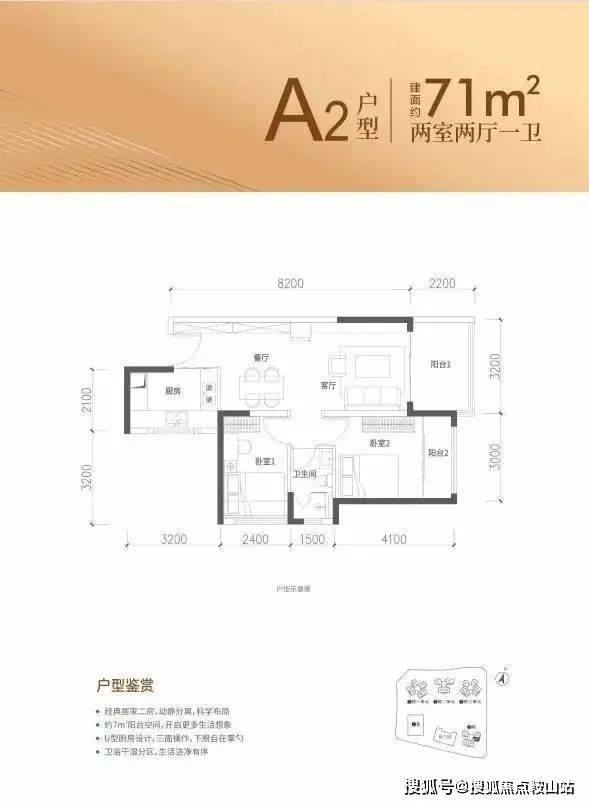 厨卫:U型厨房,卫生间干湿分离。