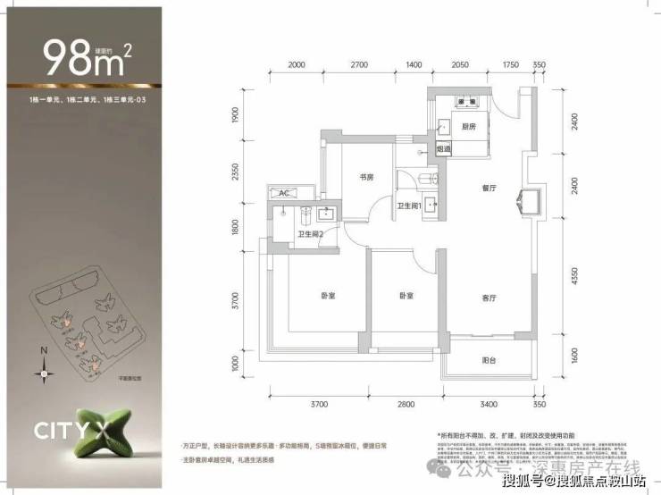 未来平方云山府,共分3期建设,总占地面积约2.73万㎡,总建筑面积约37.41万㎡,计容建筑面积约27.51万㎡,容积率9.23,绿化率32.01%,共由5栋58-59层高住宅组成,其中1栋1单元住宅59F,1栋2/3单元住宅58F,3栋1单元/2单元住宅58F,4栋1/2单元写字楼35F,2栋是1所18班幼儿园,配建有公交首末站。