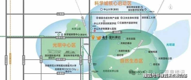 越秀星科源启,位于光明区新湖街道光侨路与科学大道交汇处东南侧,地处光明中心区板块,西北侧与科学公园北翼相邻。
