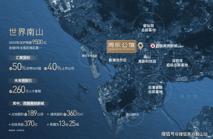 『3枢纽』:西丽高铁新城(直线距离约2.3km,在建中)、机场、深圳湾口岸便捷通达